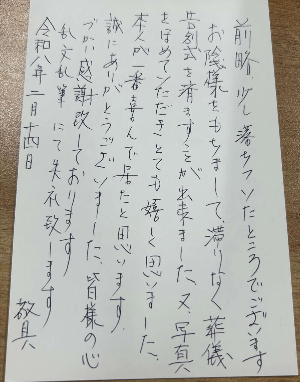このたびは大変お世話になりました。 葬儀は初めての経験で、わから…